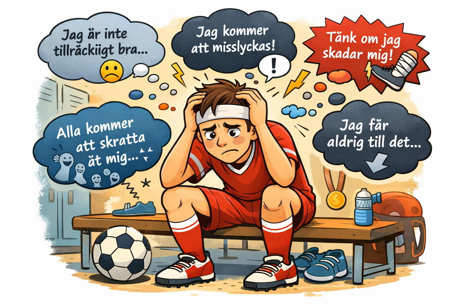 Upplever vi även starka känslor leder det ofta till att tankarna och tolkningarna färgas av dessa känslor samt att vi låser oss fast ännu hårdare i dem. Känner du dig orolig och rädd är risken större att du tolkar situationen som hotfull och skrämmande. Som en följd av det kanske du upplever automatiska tankar som: ”Jag kommer att förlora”, ”Det kommer inte att gå”, ”Det kommer bli jättejobbigt”.